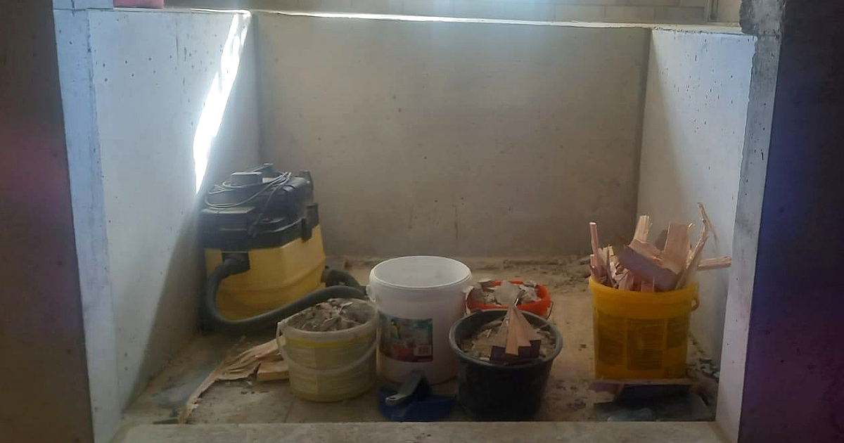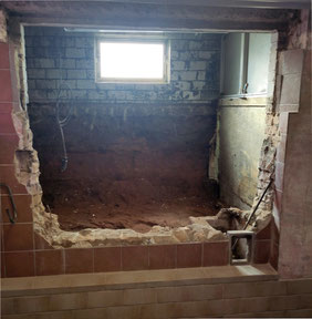 Der Abriss des fünften Aquariums hat ein großes Loch hinterlassen. Der alte Beton des Aquariums wurde abgebrochen. Eimer um Eimer mussten Bauschutt, alte Einrichtung und Sand aus dem Keller getragen werden.